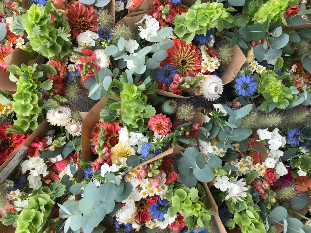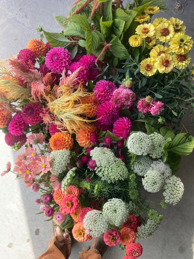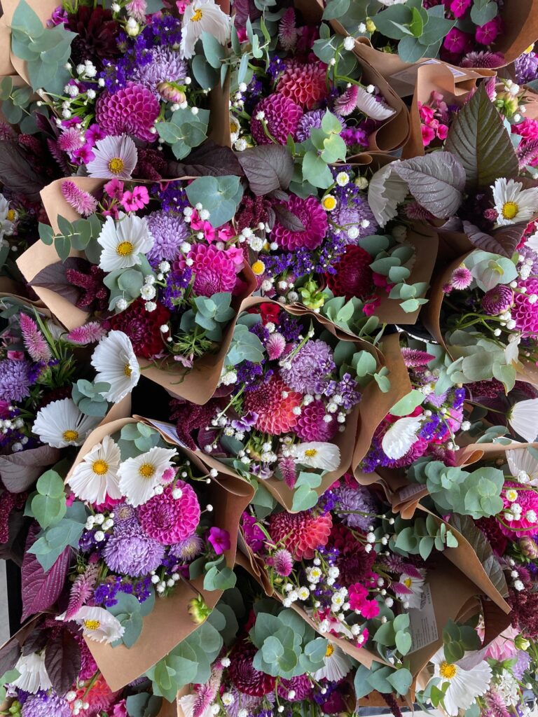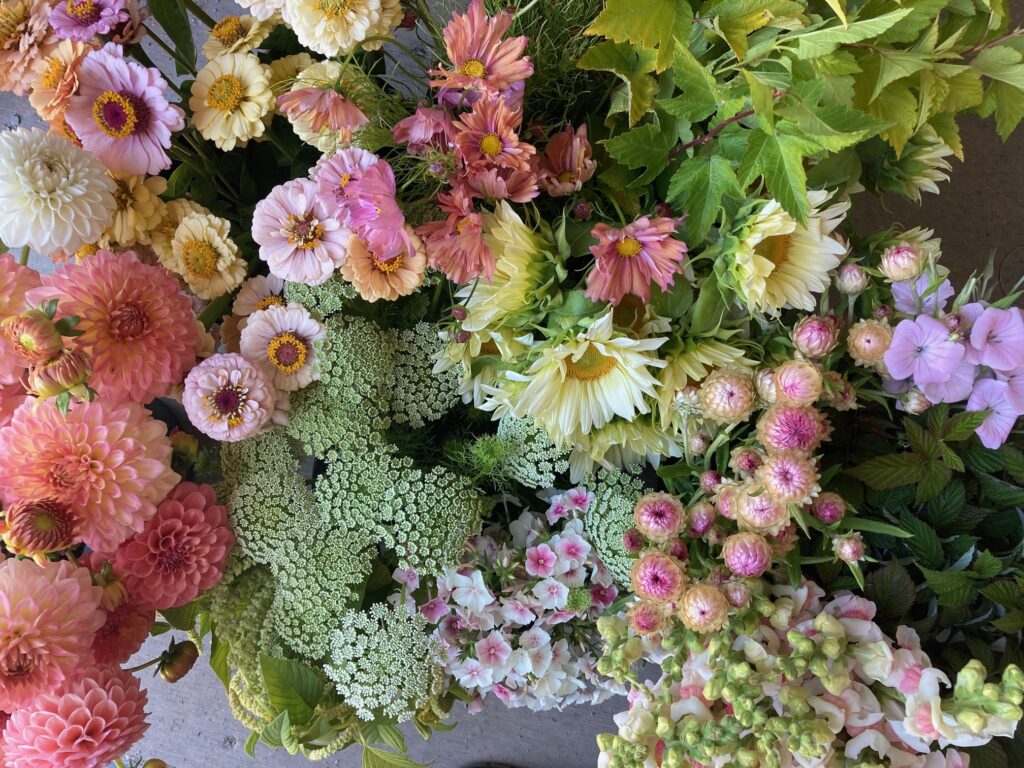 We love to grow the unique and the unusual and strive to provide excellent quality blooms, grown without synthetic chemicals and preservatives, for our florist and retail customers. Over the course of our growing season we produce a huge diversity of flowers, foliages, grasses and seedheads. From ranunculus, anemones and peonies in the spring, to snapdragons, cosmos and sunflowers in summer to dahlias, chrysanthemums and eucalyptus into the fall.